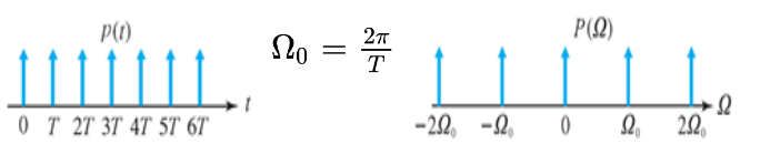 $\frac{2\pi}{T}=\Omega_0$로 반복되는 Impulse train이 된다.