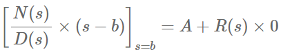 \frac{N(s)}{D(s)} \times {(s-b)} &= {A} + R(s)\times {(s-b)}