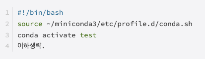 주의할 점은 shebang line으로 cond init이 이루어진 shell을 올바르게 지정해야한다.