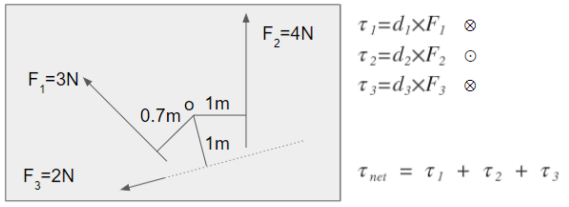 - Force의 net force처럼 Torque역시 net torque를 계산하여 rotational motion이 결정됨.