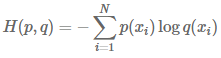 $$H(p,q)=-\sum^N_{i=1}p(x_i)\log{q(x_i)}$$