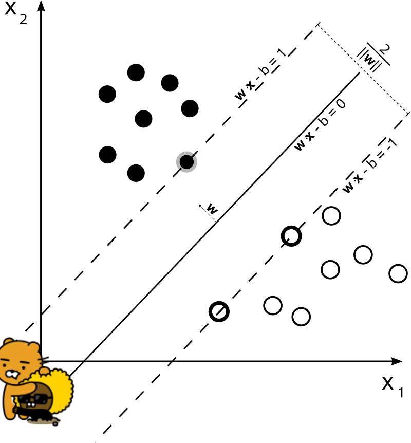 Support vector machine이라는 이름이 유래됨. - Machine 은 vector 형태의 입력을 통해 decision (클래스의 분류)을 하는 의사결정머신 이라는 점에 착안.