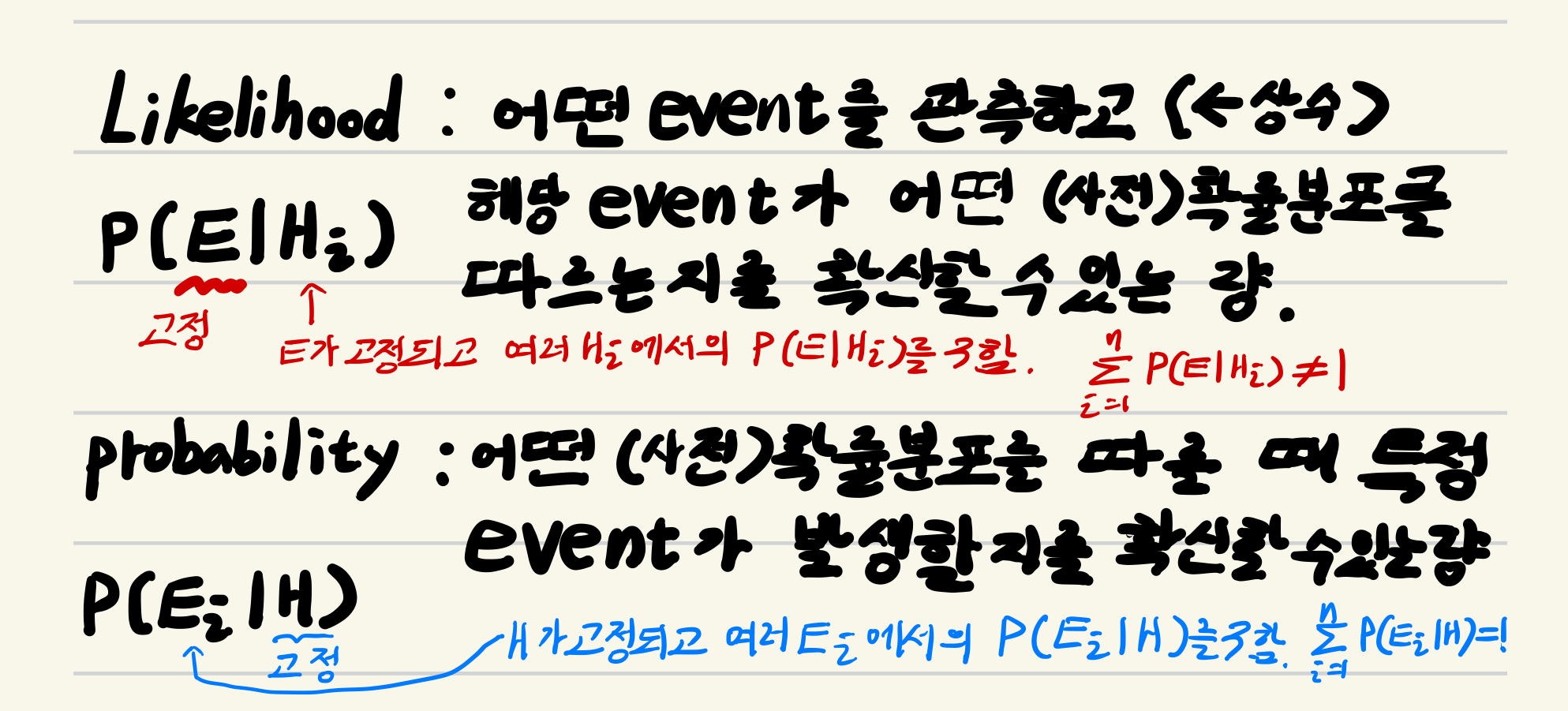 - 이 두 likelihood는 상대적인 비교는 가능하지만, 이 둘을 더한다고 1.0이 되진 않음.