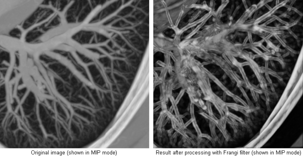 - Alejandro F. Frangi, Wiro J. Niessen, Koen L. Vinc and Max A. Viergever (1998), "Multiscale Vessel Enhancement Filtering", Medical Image Computing and Computer-Assisted Interventation — MICCAI’98 Lecture Notes in Computer Science 1496/1998: 130.