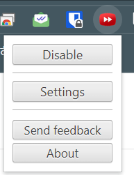 해당 icon을 클릭하면 다음과 같이 Disable, Settings, Send feedback, About의 메뉴가 보임.