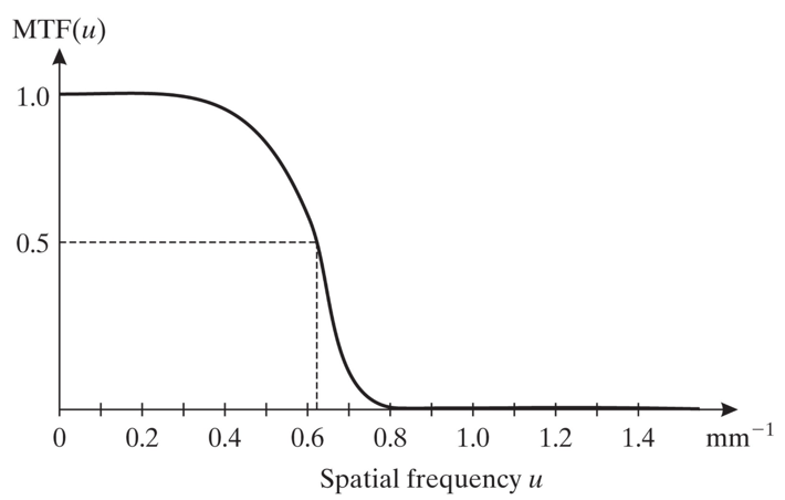 Modulation Transfer Function) curve, Function describing the ratio between the amplitude of a pure frequency signal before and after a system as a function of the frequency. Indicates the ability of a film to record fine detail.