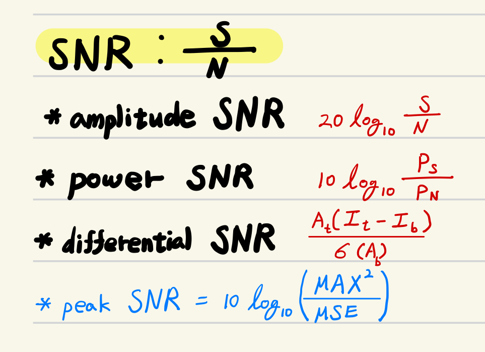 ideal image가 있고, 해당 image와 얼마나 유사한지를 나타내는 지표로 사용되는 SNR.