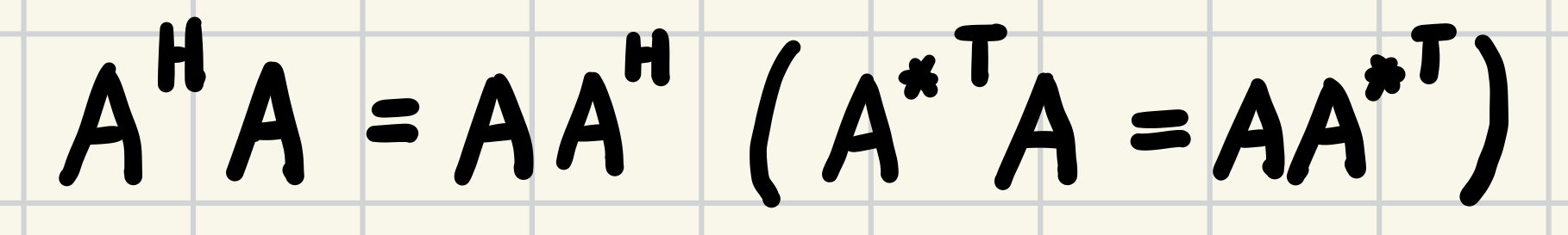 다음을 만족하면 $A$를 Normal Matrix (정규행렬)이라고 부름.