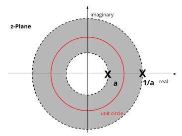 - Left-side Signal의 ROC는 $z=0$(origin, 원점)을 포함.