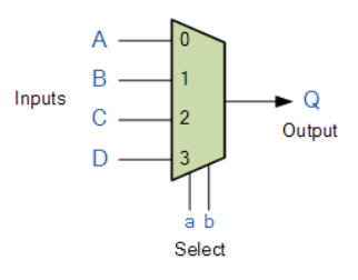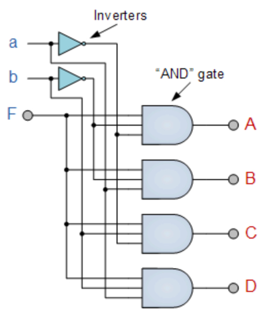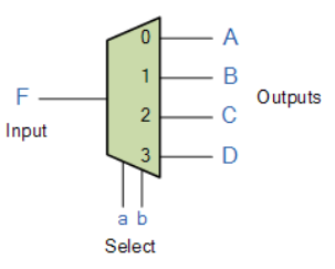 input `F`를 `a`,`b`의 입력에 따라, 어느 출력으로 전달할지가 결정이 된다.