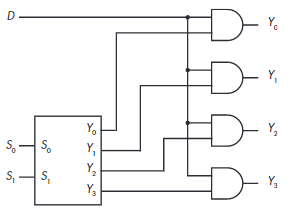 - $2\times 4$ Decoder 와 AND를 이용한 $1 \times 4$ Demux
