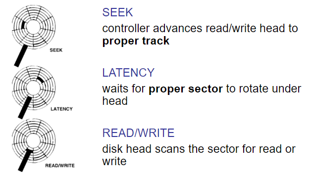 Latency (or Rotational latency, 회전 지연시간)은 track에서 실제 sector로 이동하는데 걸리는 시간.