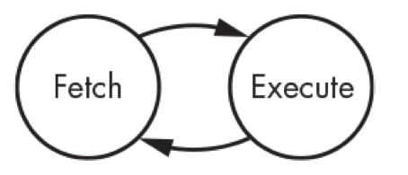 fetch와 execution cycle은 instruction이 수행되는 단계를 구성하며 댜음과 같은 state machine으로 표시됨.