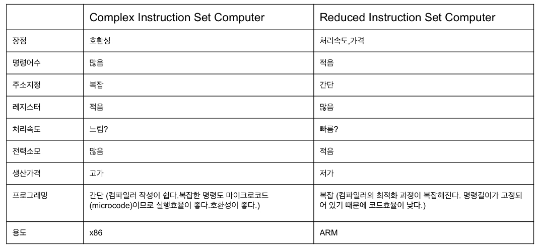 - 최근에는 CISC와 RISC가 상대방의 특징을 도입하여 각각의 단점을 개선하고 있으며 명확하게 구분하기는 어려움.