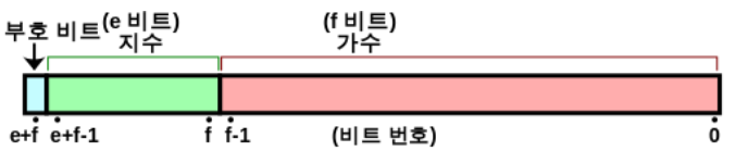 - 소수점의 위치가 고정(fixed)된 것이 아닌 지수(exponent)부 와 가수(mantissa or fraction)부로 나누어 표기하여
