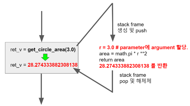 다음 그림이 위의 과정을 앞서 나온 get_circle_area 함수 호출의 예를 보여줌.