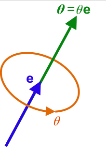 From Wikipedia, the free encyclopedia Parameterization of a rotation into a unit vector and angle The angle θ and axis unit vector e define a rotation, concisely represented by the rotation vector θe. In mathematics, the axis–angle representation param