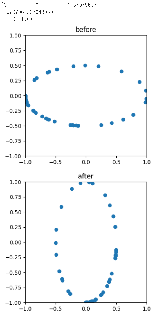 이를 이용하여 3차원의 좌표로 구성된 x-y plane의 타원형을 z축으로 ccw 90도 rotation시키는 예제는 다음과 같음.