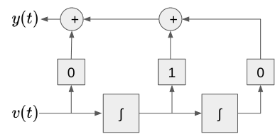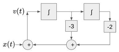 v(t)+ 3D^{-1}v(t) + 2D^{-2}v(t) = x(t) \\ v(t) = - 3D^{-1}v(t) - 2D^{-2}v(t) + x(t) $$