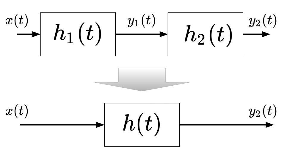 - $y_2(t)=y_1(t)*h_2(t)=h_1(t)*h_2(t)$