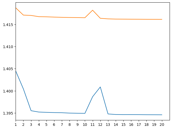 kears.optimizers.Adam으로 훈련하고, 이를 tf2 format으로 저장한 이후 저장된 파일로부터 model architecture와 weight 등을 load하고 다시 10 epochs를 훈련했다. (즉, 총 epoch는 20임). - 각 10epoch의 history 의 객체를 얻어 이를 concatenate시켜 20개의 loss 값들로 구성된 learning curve를 만들었다.