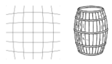 격자 무늬가 술통(barrel)처럼 보이게 된다고 해서 Barrel distortion이라고 불림.