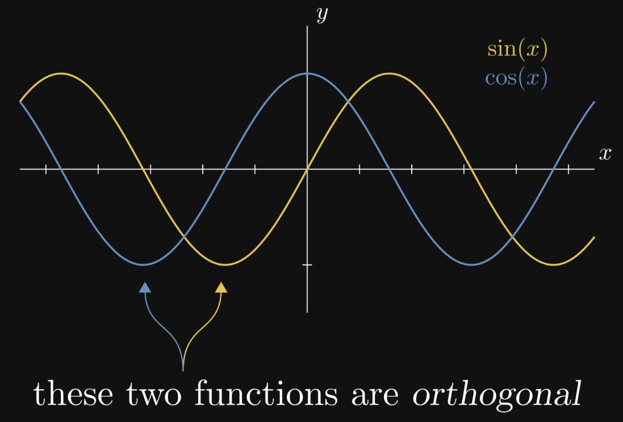 $\sin$ 함수는 interval $[-\pi,\pi]$ 자기 자신을 제외한 다른 함수와의 innder product가 0이므로 Orthogonal function임.
