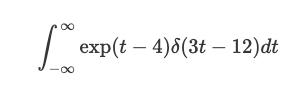 \int ^\infty _{-\infty} \exp(t-4)\delta(3t-12)dt