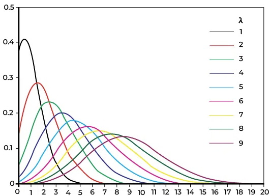 $$ \text{Poisson}(x;\lambda)=\frac{\lambda^x e^{-\lambda}}{x!} $$