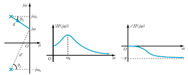 - $s=j\omega$로 imaginary axis에 위치할 경우 $s=\pm \omega_0$인 경우 가장 gain이 큼.