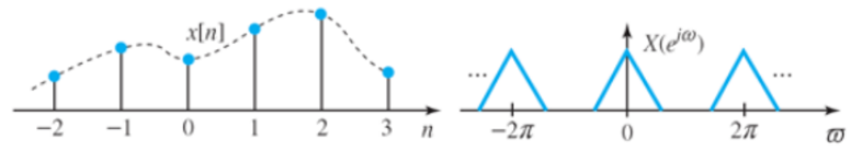- DTFT가 time domain에서의 sampling으로 인해, $2\pi$ 주기성을 가짐을 의미하며,