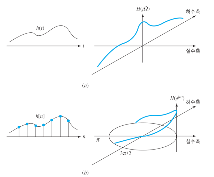 - a)는 CTFT의 경우 (S 평면. $H(j\Omega)$ )를,