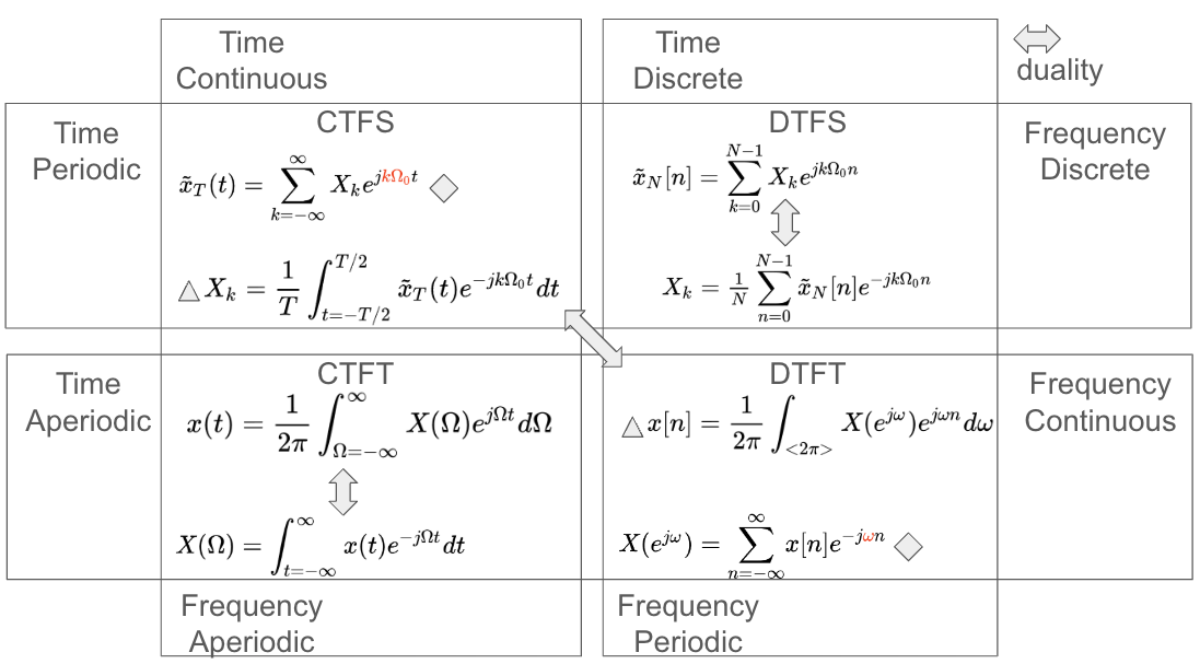 - CTFS와 DTFT는 자체적이 아닌 CTFS와 DTFS 간에 duality이 성립 : (아래 관계도 2참고)