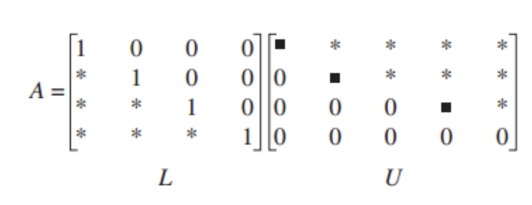 - $U$: 대각선 위에만 값(반드시 1일 필요는 없음)이 있는 Upper Triangular Matrix(상삼각 행렬).