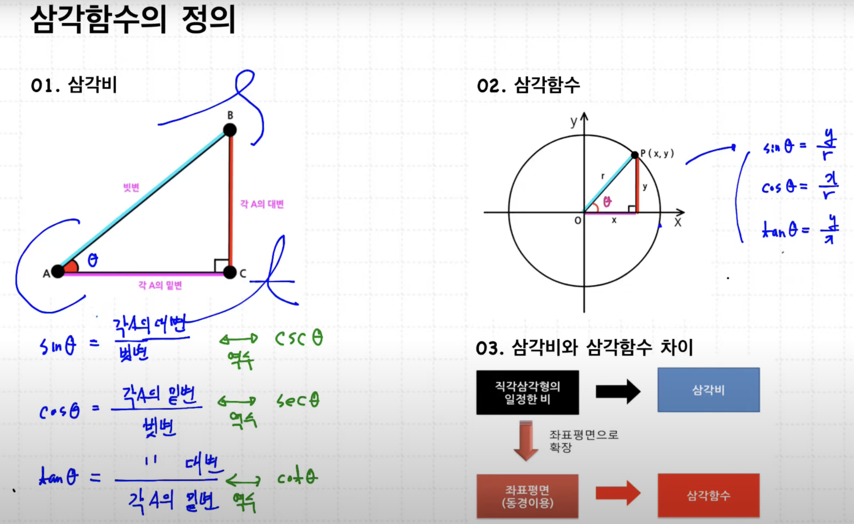Trigonometric functions 는 angle의 크기에 따라 변하는 functions로