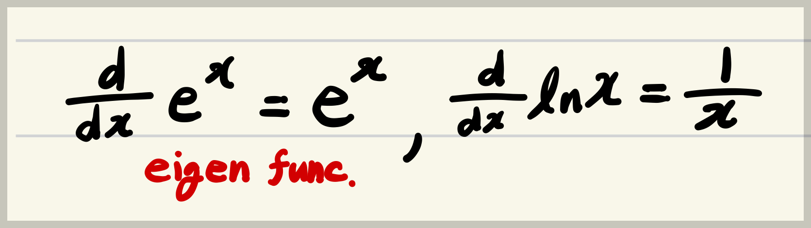 다음이 기본적인 지수와 로그 함수의 도함수임.
