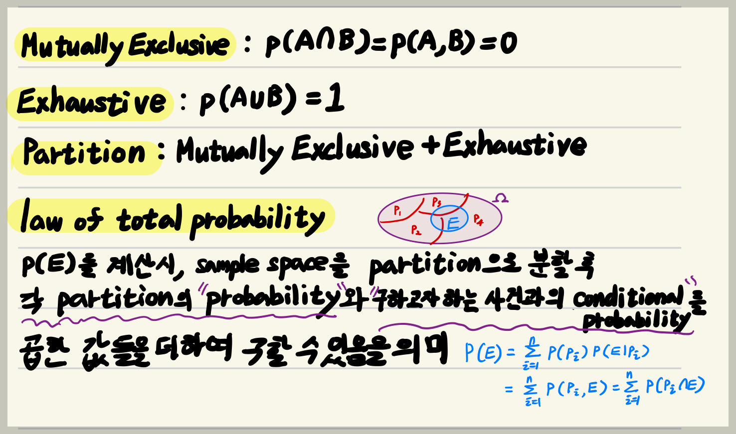 참고로, partition을 이루는 각 event $E_i$를 partition event라고 부름.