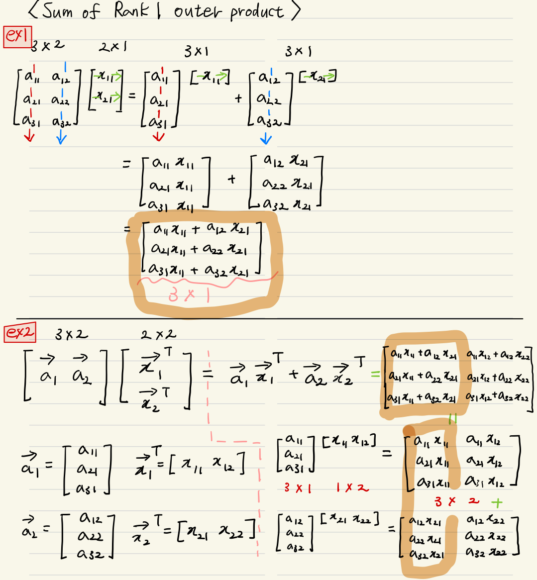 Matrix와 vector의 곱을 rank-1 outer products의 sum(합) 으로 해석.