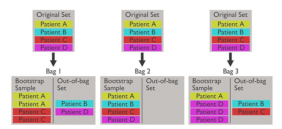 Out of Bag (OOB)는 Bagging (Bootstrap aggregating)과 같이 Bootstraping을 이용한 Ensemble Model에 등장하는 용어.