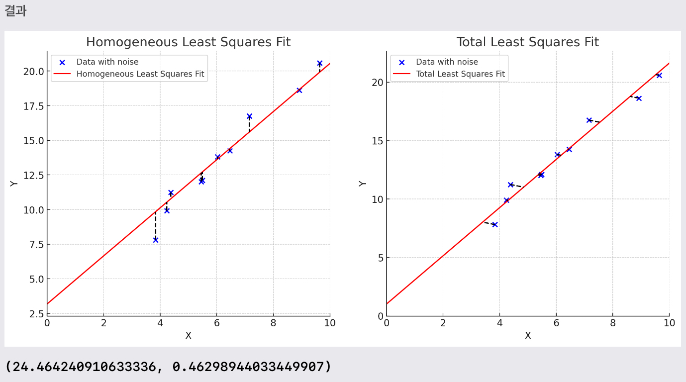 다음은 Homogeneous Least Squares와 Total Least Squares를 비교한 예임.