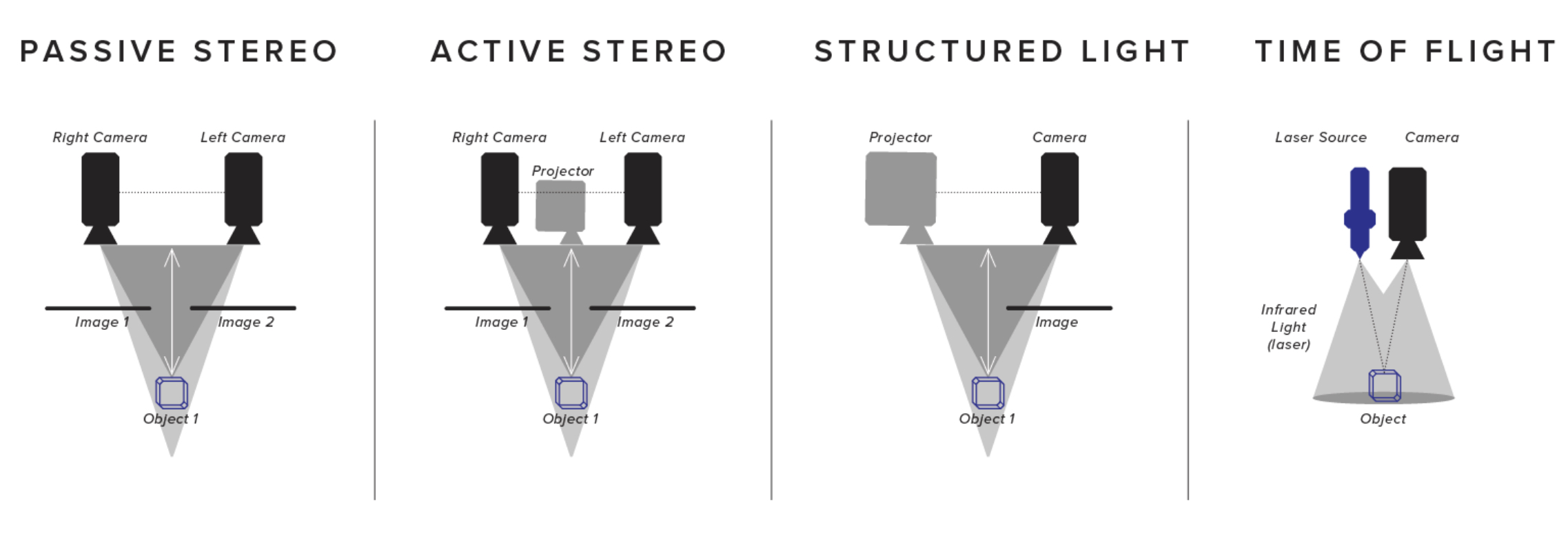 현재 주요 Depth Camera는 다음과 같이 나누어짐.