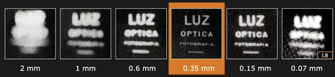다음 그림에서 0.35 mm가 최적의 pinhole 크기이고,