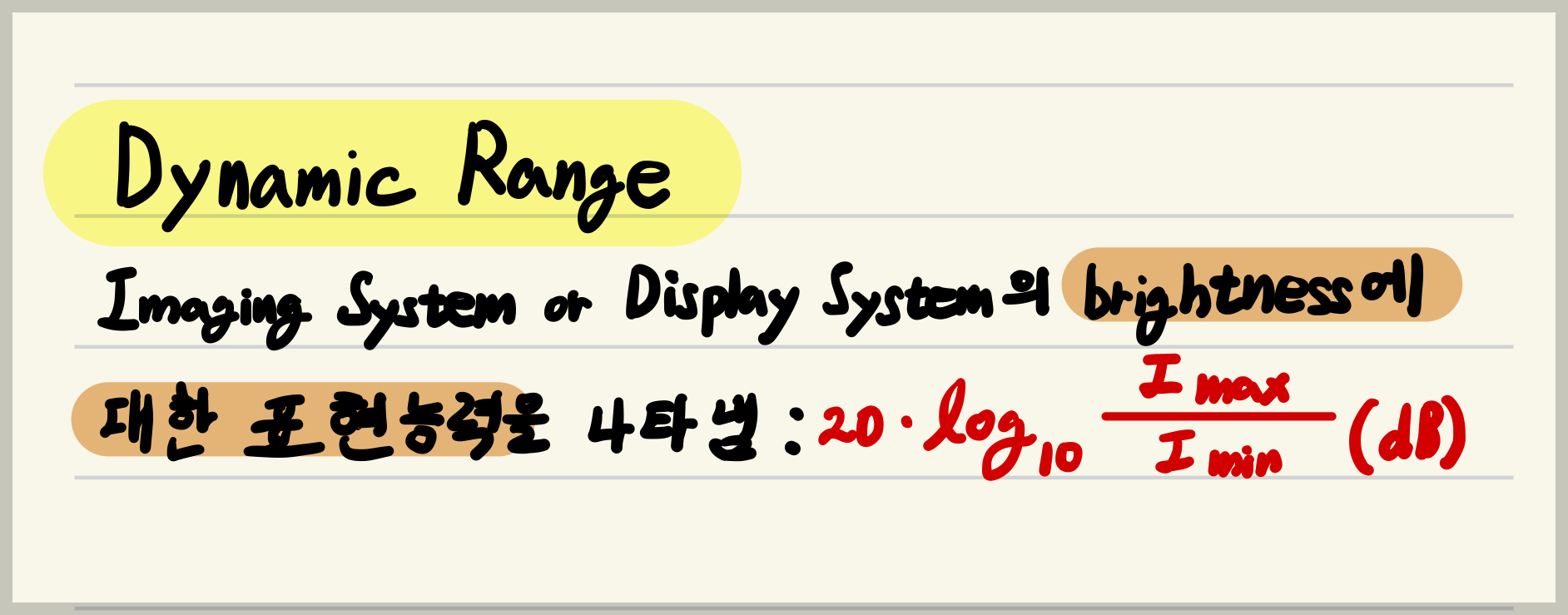 Dynamic Range는 다음과 같은 수식으로 표현할 수 있음: