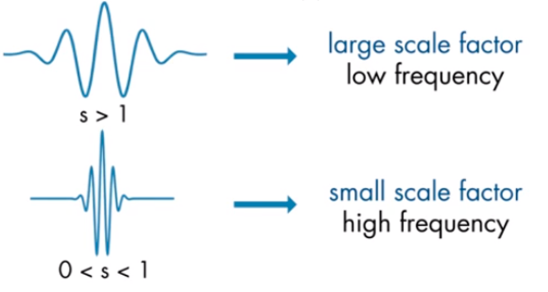 - FT의 주파수 대신 wavelet에선 scale이 이를 담당하며 wavelet에서의 shift는 특정 시간의 지점(분석될 위치 지정)을 분석하는데 사용됨.