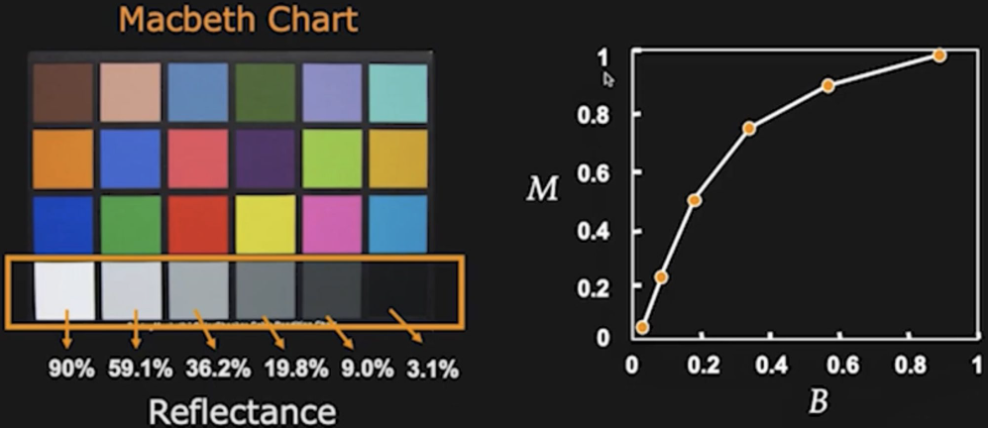 - 알려진 “reflectance (반사율)”의 여러 patch들로 구성된 차트를 촬영하고