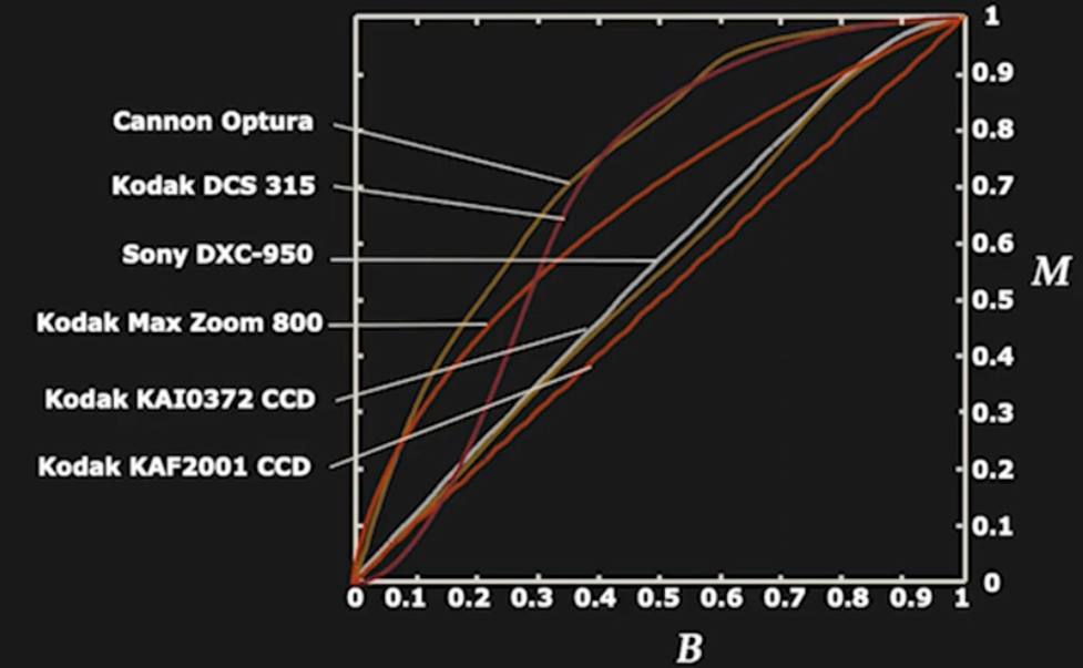 - display device에서도 characteristic curve, characteristic equation 등으로 많이 쓰이며, Camera의 경우엔 camera response function 을 보다 많이 사용함.