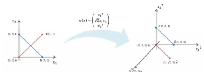 - “다차원 매핑 변환 $\phi$를 한 후의
