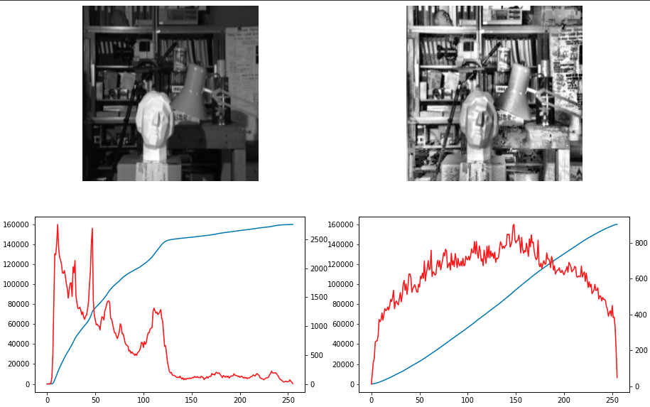 - 이같은 redistribution을 수행하고 나서 cdf를 계산하여 histogram equalization 적용.
