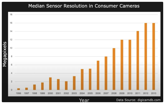 - 소비자용 디지털 카메라의 센서 해상도는 일반적으로 1~2메가픽셀(MP) 수준.