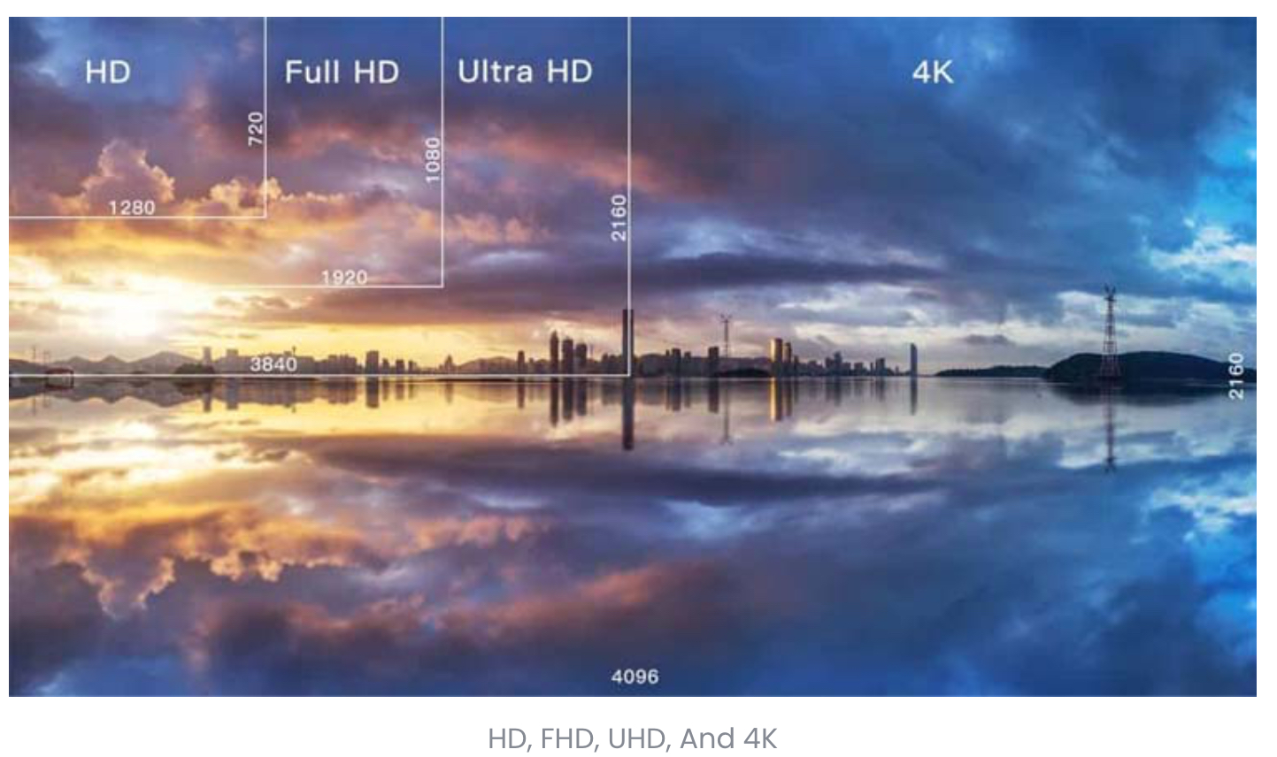 - SD (Standard Definition), HD (High Definition), FHD (Full Definition), UHD (Ultra High Definition)와 같은 용어